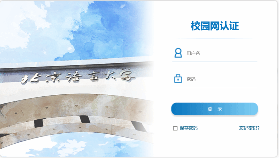 校园网采用网页认证方式登录,使用无线网需要连接无线信号(BLCU)。连接校园网后在浏览器里打开任何网页都会弹出登录页面 http://login.blcu.edu.cn或http://logout.blcu.edu.cn ,输入账号密码即可登录。登录页面如下图: