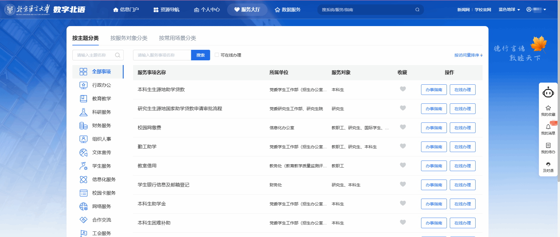您可通过数字北语“服务大厅”进入,也可通过微信企业号—A数字北语—服务大厅访问该服务。
