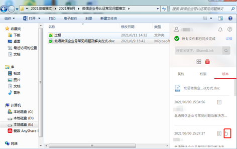 注意:只有对文件具有修改权限,才可以还原文件的历史版本。