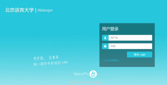 浏览器输入网址:http://webvpn.blcu.edu.cn或http://webvpn2.blcu.edu.cn进入登录页面。