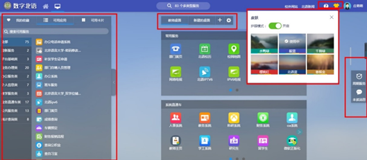 1)可从左侧应用栏添加应用卡片,如个人课程表、一卡通、个人日程、邮件等相关内容;