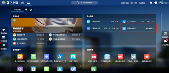 (2)点击“学生桌面—个人数据—我的邮件”,即可进入邮箱。